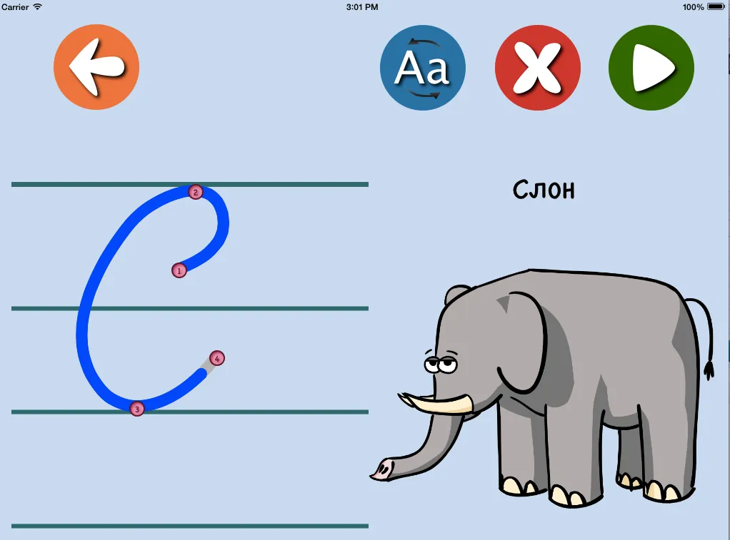 Приложението е насочено към деца, които искат да се научат да пишат и четат на български език. Особено полезно е за тренирането на ръкописно изписване на буквите от българската азбука. Децата с пръстче или специална писалка изписват ръкописните букви на екрана на таблета.